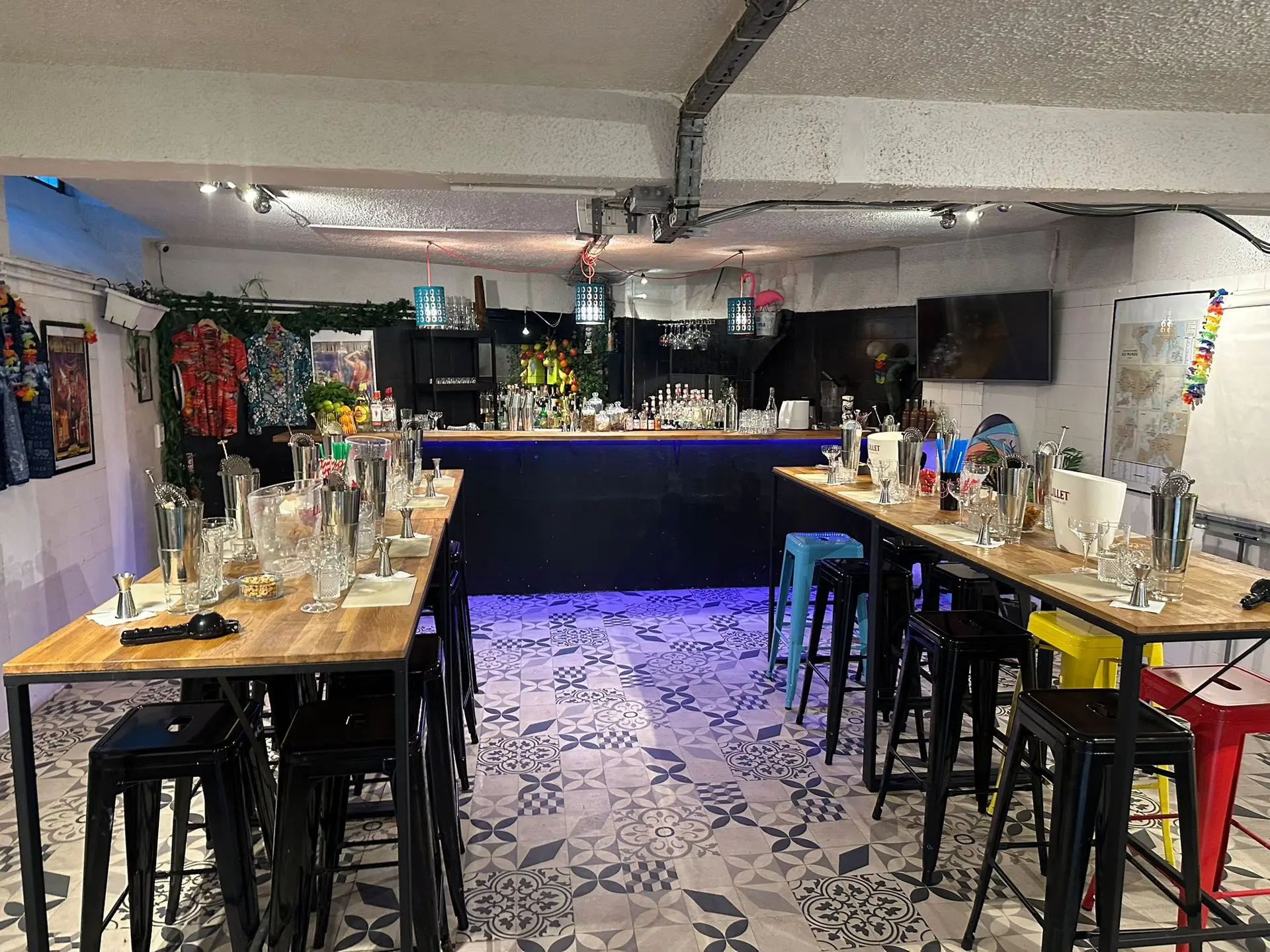 Nos cours de mixologie se déroulent dans un bar de formation d’environ 50 m², situé dans les anciens bains-douches du sous-sol de notre boutique parisienne. Ce lieu secret, à l’ambiance speakeasy et confidentielle, vous plonge dans une atmosphère rétro et inspirante.